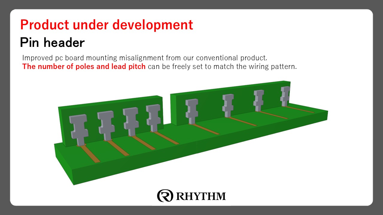 - 配線パターンに合わせて極数やリードピッチが自由に設定可能