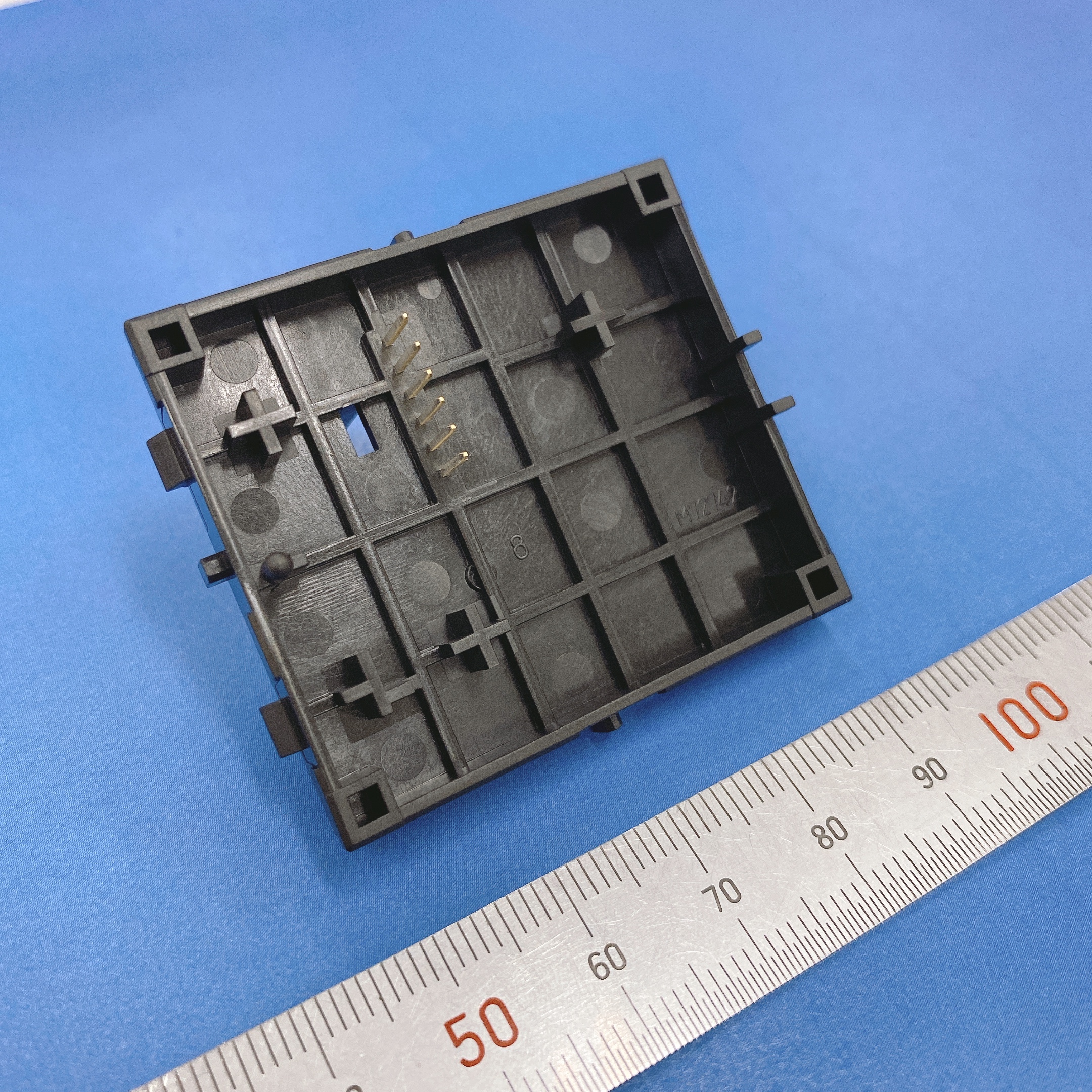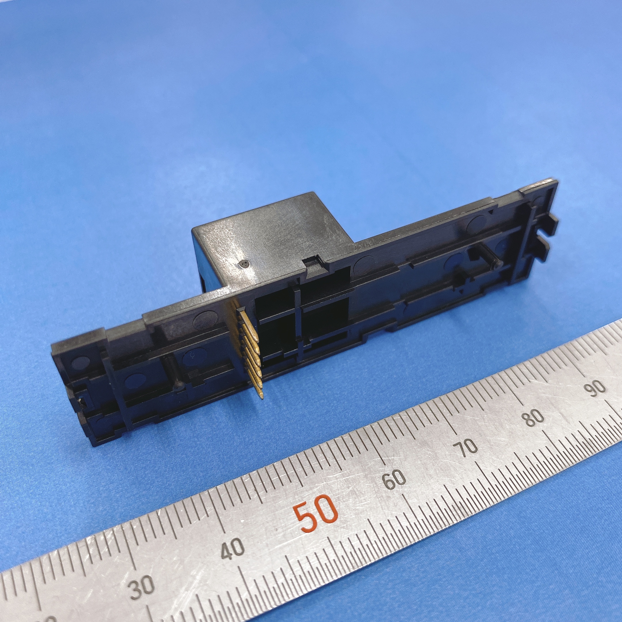 自社で加工したプレス品を使用して、インサート成形を行っています。成形機は40~75tまで合計7台保有しています。